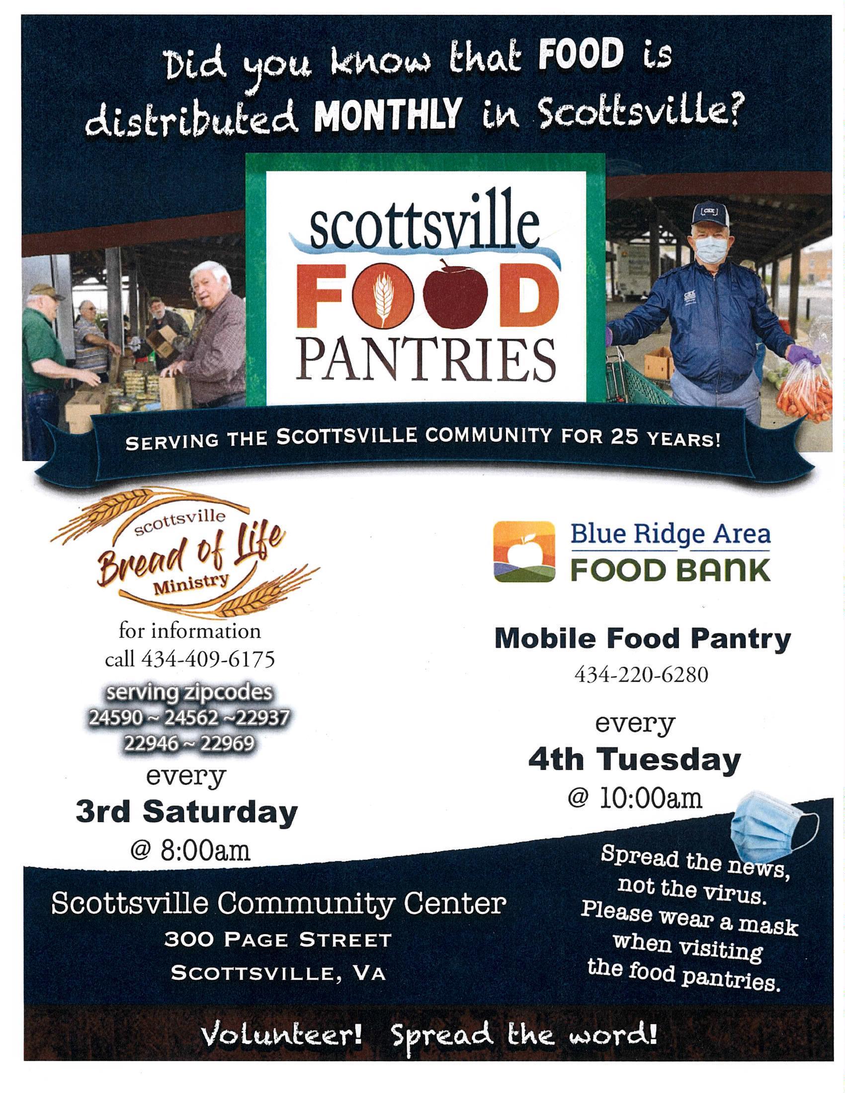 List of Food Pantries within 25 miles of Scottsville – download PDF here